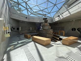 Im Zentrum der neuen Halle, die exakt an der Stelle des früheren Loreley-Hotels steht, und damit ebenfalls aus Gründen zum Schutz des Welterbes nicht weiter an die Felskante gerückt wurde und von ihrer Höhe her auch extra ein Stück niedriger als das frühere Dach errichtet ist, steht eine beeindruckende Felsinstallation, die mit Licht, Klang und Nebeleffekten die Entstehung und die Legenden rund um den Loreleyfelsen visualisiert. Sie lädt die Besucher dazu ein, in die Sagenwelt einzutauchen und die Faszination dieses weltberühmten Ortes mit allen Sinnen zu erfassen. In Anlehnung an das Gedicht von Heinrich Heine, wo es heißt ‚...die Luft ist kühl und es dunkelt, und ruhig fließt der Rhein; der Gipfel des Berges funkelt im Abendsonnenschein...‘ ist der stilisierte Gläserne Fels gleichzeitig Dachkonstruktion und Ausstellungselement der darunterliegenden Mythoshalle, wo der Loreleyfels sein Geheimnis preisgibt. Aus dem Boden erwächst der Fels, der sich zur Decke hin zunehmend defragmentiert und schließlich im Dach als Gläserner Fels auflöst. Die Mythen und Geheimnisse werden zudem an den Wänden des Ausstellungsraumes in sieben Kapiteln, symbolisch für das siebenfache Echo der Loreley, sowie an den Mythischen Orten auf dem Plateau, den Hörfelsen, unter freiem Himmel im Kultur- und Landschaftspark Loreley thematisiert und komplettiert.