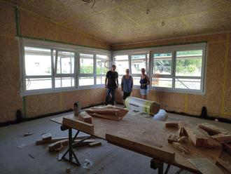 Beim jüngsten Baustellentermin informierte Architekt Jürgen Heyer über den derzeitigen Baufortschritt, der im Zeitplan liegt. So erfolgen in der nächsten Woche die Estricharbeiten und der Innenausbau im Anbau könnte bis Ende September fertig gestellt werden.