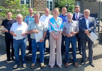 Die Vertreter der Städte und Gemeinden dankten Staatssekretärin Simone Schneider, die die Förderbescheide persönlich bei einem Treffen in St. Goarshausen überreichte, für diese finanzielle Entlastung.