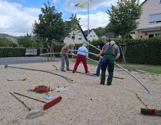 Am 3. und 17. Juli waren die "Wühlmäuse" wieder in unserer Gemeinde mit der Pflege und Instandhaltung öffentlicher Flächen unterwegs. Eine Vielzahl von geplanten Tätigkeiten konnten zügig und erfolgreich abgeschlossen werden. Folgender Arbeiten wurden durchgeführt: Mäharbeiten und Sträucherschnitt Ausgang "Untere Großgasse", Nehbergufer, Rheinanlagen, Gemeindefriedhof, Dorfplatz und Kirschenpfad. Umgestürzte Bäume auf dem Rheinsteig und Nehbergufer wurden beseitigt. Defekte Bänke und eine Infoschautafel (Nehbergufer, Rheinanlagen) wurden abgebaut. Auf dem Dorfplatz wurde das Kuppelzelt mit Tischen und Stühlen aufgestellt. Nach getaner Arbeit war für eine kleine Verpflegung mit erfrischenden Getränken bestens gesorgt. An den beiden Arbeitseinsätzen nahmen teil: Friedhelm Braun, Klaus Gras, Herbert Hähn, Alexander Heil, Gerhard Hewel, Heinz Nass, Arno Nebauer, Gerhard Peitz, Martin Pichon, Michael Platt, Dietmar Runkel, Werner Schade, Bernd Zilinski. Der Arbeitseinsatz trug in besonderem Maße zur Verschönerung des Ortsbildes bei. Die engagierte Beteiligung aller Helfer verdient besondere Anerkennung.