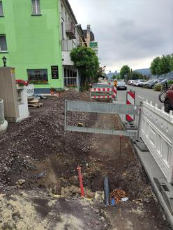 Das kann viele Ursachen haben, aber es nutzt nichts. Der Graben kann nicht geschlossen und dadurch nicht weitergearbeitet werden, da noch Umbindungen von der Wasserleitung zu den Hausanschlüssen erforderlich sind, sobald vom Untersuchungsamt in Sachen Wasserqualität „grünes Licht“ gegeben wird. Die neuen Wasserproben wurden diese Woche Montag gezogen, bis dahin haben die VG-Werke des gesamte Ortsnetz gechlort, um die Chancen auf Keimfreiheit zu verbessern. Das Untersuchungsergebnis wurde für diese Woche Mittwoch erwartet. Wenn das endlich ok ist kann es voraussichtlich ab Montag, 15.08.2022, weitergehen.
