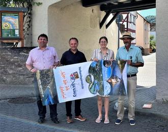 Landrat Jörg Denninghoff, Bürgermeister Mike Weiland und Ortsbürgermeister Ottmar Schnitzius wünschen der Filsenerin Teresa Conze eine erlebnisreiche Zeit bei ihrem FSJ in Südafrika und gute Erfahrungen.