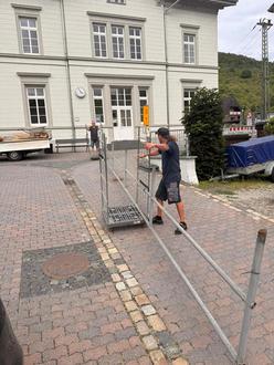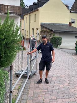 Im Zuge der Neugestaltung des südlichen Bahnhofsbereiches wurde auch ein über 10 Meter langes Geländer ausgetauscht. Das alte Geländer war aber zu schade zum Wegwerfen und soll auf dem Friedhof weiter verwendet werden. Aber wie soll das Ding vom Bahnhof zum Friedhof ohne großen Kostenaufwand? Unser Bauhofmitarbeiter Heribert Weinand bewies Einfallsreichtum und beförderte mit Freunden vom Knobelclub das schwere und lange Gerät durch die Gassen bis zum Friedhof. Die Gemeinde sagt herzlich Dankeschön!