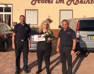 Mit der Übergabe eines Blumenstraußes für die Chefin und Schokolade für das Küchenpersonal dankten Dirk Schlaadt und der Bürgermeister der Verbandsgemeinde Loreley, Mike Weiland, persönlich für diese absolut großzügige und nicht alltägliche Geste der Familie Henn-Mundt gegenüber der Feuerwehr, denn neben reichlich Pizza, die am späten Sonntagabend von den Feuerwehrkameraden aus Kamp-Bornhofen ins Feuerwehrgerätehaus nach Braubach zur Stärkung gebracht wurde, spendierte das Hotel-Restaurant Im Rheintal darüber hinaus noch einige Kästen Getränke für die Feuerwehrfrauen und -männer sowie die weiteren Einsatzkräfte. "Im Namen aller Einsatzkräfte gilt dem Hotel-Restaurant Im Rheintal ein herzliches Dankeschön", so die beiden Vertreter von Feuerwehr und Verwaltung der Verbandsgemeinde Loreley gegenüber der Inhaberin.
