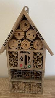 sagt der Gemeinderat den Kindern, die dieses schöne Insektenhotel bei der Veranstaltung Ferien am Ort mit den Betreuern des VfL gebastelt haben.