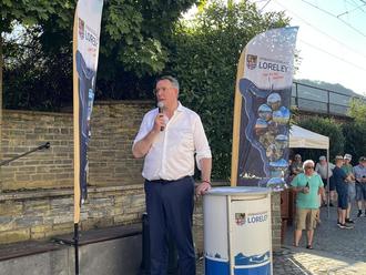 Das 30. Zukunftsgespräch stand dieses Mal unter dem Motto ‚Zukunftschancen im ländlichen Raum der VG Loreley‘. Daher war es klar, dass Mike Weiland dem Gast aus Mainz auch einige der dicksten Herausforderungen, bei denen man auf die Unterstützung des Landes angewiesen ist, als Ball für dessen Impuls zuspielte: Finanzausstattung der Kommunen, Bahnlärm, die Forderung nach einer Alternativtrasse für den Güterverkehr im Mittelrheintal, der Hochleistungskorridor 2026 der Bahn, Barrierefreiheit von Bahnhöfen, wenn Gemeinden sich die erforderlichen kommunalen Anteile nicht erlauben können, aber auch die Zuverlässigkeit des SPNV. Es bedürfe der in der Straßeninfrastruktur der dringend benötigten Mittelrheinbrücke, der Sanierung der L 334 (Wellmich-Dahlheim), der (Bundes)-Radwege und neuer Ortsdurchfahrten in Kestert und Osterspai entlang des Rheins und last but not least die ebenso dringend notwendige Ortsumgehung Braubach der L 335, weil eine intakte Infrastruktur wiederum vor allem für die Unternehmen sowie die Menschen und deren Lebensqualität wichtig ist. Sorgen sieht Mike Weiland mit Blick auf die Umsetzung der Kommunalen Wärmeplanung: „Es wird in den kleinen Gemeinden nicht viel herumkommen, weil dort, wo sich Möglichkeiten der Umsetzung bieten, im UNESCO-Welterbe keine Stromgewinnung aus Erneuerbaren Energien erfolgen darf.“