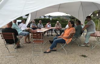 Der Dorfplatz in Filsen lud geradezu zum Bürgertreff ein und zahlreich waren die Bürgerinnen und Bürger der Gemeinde an der größten Rheinschleife der Einladung von Bürgermeister Mike Weiland sowie Ortsbürgermeister Ottmar Schnitzius gefolgt. Die anwesenden Menschen stellten interessante Fragen zur Entwicklung der Gemeinde hinsichtlich der Flächennutzungsplanung, der Umstellung des Beitragssystems von Einmal-Ausbaubeiträgen in die Form der Wiederkehrenden Beiträge sowie zum Klimaschutz in der Verbandsgemeinde Loreley. Ebenso ging Bürgermeister Mike Weiland bei seinen Informationen wunschgemäß und angesichts der derzeit hohen Sommertemperaturen auch auf die derzeitige Lage der Wasserversorgung ein. Abgerundet wurden die Ausführungen, zu denen auch Ottmar Schnitzius den Blickwinkel der Gemeinde Filsen beisteuerte vom aktuellen Sachstand des Glasfaserausbaus durch das Unternehmen "Unsere Grüne Glasfaser". Ausführlich berichtete Bürgermeister Mike Weiland auch über die Unternehmungen der Verbandsgemeinde Loreley, die hausärztliche Versorgung in ihrer Stabilisierung zu unterstützen. "Das ist eigentlich ein Thema, bei dem wir als Verbandsgemeinde die kürzesten Hebel zum Ansetzen haben. Hier müsste von der Bundesebene beginnend einiges neu organisiert werden, aber dennoch nehmen wir uns als Verwaltung eines solchen Themas an, weil uns unsere Heimat und deren Entwicklung im Sinne der Daseinsvorsorge ungeheuer wichtig ist", so Mike Weiland.
