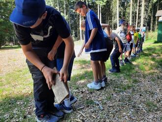 Vom 11. bis 15.08. fanden in Kooperation mit Carsten Frenzel, staatlich zertifizierter Waldpädagoge, vom Forstamt Nastätten die diesjährigen Walderlebnistage des Kinder- und Jugendbüros statt. Bei schönstem Wetter erkundeten die 12 teilnehmenden Kinder zwischen acht und zwölf Jahren gemeinsam den Dahlheimer Wald. Abgesehen vom Hüttenbau, einer Slackline und einigen Partien Wikinger-Schach wurde den Kindern ein abwechslungsreiches Programm geboten. In Büchelborn auf dem Hof von Familie Struth konnten die Kinder zum Beispiel Kälbchen besuchen und es gab frische Milch für unseren Milchreis. Wir bauten Pfeile und Bögen und lernten, meist spielerisch, sehr viel über den Wald, seine Pflanzen und Bewohner. Am letzten Tag, dem „Feuertag“, wurde gemeinsam Brennholz und Zunder gesammelt und das Feuer ohne Feuerzeug oder Streichholz mit Birkenhäutchen, Disteln und kleinen Zweigen, mit Hilfe eines Feuerstahls selbst entfacht. Beim Zubereiten des Mittagessens halfen alle gerne mit. Der Speiseplan war auf die Schwerpunkte vegetarisch, biologisch und saisonal ausgerichtet. Sogar das Dinkelmehl für die Pfannkuchen wurde von den Kindern selbst gemahlen. Die gesammelten Pilze, Rotfußröhrlinge und Steinpilze, landeten in der Pfanne und so konnten viele der Kinder zum ersten Mal heimische Speisepilze probieren. Es war bereits das vierte Mal, dass die Walderlebnistage in Kooperation mit Carsten Frenzel angeboten wurden. Das Angebot war wie auch in den letzten Jahren sehr schnell ausgebucht und wird sicher auch im nächsten Jahr wieder stattfinden. Wir freuen uns jetzt schon darauf!