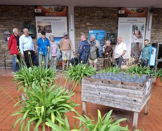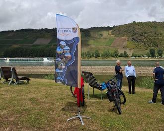 "Wenn das Wetter bei einer Radtour trocken ist, hellt das gleich die Stimmung auf", so Mike Weiland im Rahmen der Begrüßung auf der Loreley. Als kleines Highlight dieses Termins durften die Teilnehmer, unter ihnen erneut das Team der BUGA gGmbH und Bürger, einen bis dato noch streng geheimen Blick hinter die Kulissen der neuen Mythoshalle werfen, die erst zwei Tage später offiziell der Öffentlichkeit präsentiert wurde. Danach ging es weiter in die Weinberge nach Dörscheid, wo man von Christian Muders vom Weingut Fetz mit einem guten Tropfen begrüßt wurde. Nach einen Austausch über die aktuelle Lage der Winzer am Mittelrhein sowie spezielle Themen hinsichtlich der Weinberge in Kaub und Dörscheid ging es weiter zum Dorfgemeinschaftshaus Dörscheid, wo Oliver Rink und Aktive der Gemeinschaft, die das BUGA-Bürgerprojekt Schmetterlingsdorf gemeinsam mit BUGA-Projektmitarbeiter Rick Vogel den aktuellen Stand der Planungen zur Gestaltung des Schmetterlingsdorfes vorstellten.