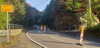 Nach Auskunft des LBM war es hier zu einem Steinschlag auf die Fahrbahn gekommen, weshalb die Stelle aus Sicherheitsgründen halbseitig gesperrt werden musste.