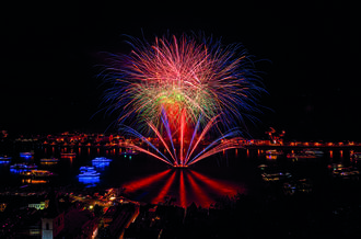 Eines der imposantesten Feuerwerke im Mittelrheintal - „Rhein in Flammen“ zwischen Sankt Goar und Sankt Goarshausen - findet in diesem Jahr traditionell wieder am dritten Wochenende im September, am 21.9. ab 21:00 Uhr, statt. Das Feuerwerk wird vom Rhein und den Höhen aus abgeschossen. Erleben Sie Burg Rheinfels im feierlichen Lichterglanz!