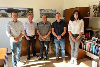 v.l.n.r. Büroleiter Jan-Hendrik Clasen, Bürgermeister Mike Weiland, Uwe Schneider, Sachgebietsleiter Finanzen Timo Perscheid und Rita Müller als Personalratsvertreterin.