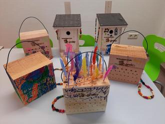 Insgesamt acht Kindergärten, Schulen und Vereine beteiligten sich im vergangenen Jahr an der Aktion. Mit Insektenhölzern, Nistkästen und jede Menge Materialien im Gepäck veranstaltete das Kinder- und Jugendbüro mehrere Aktionstage in der Verbandsgemeinde Loreley. Zu Beginn einer jeden Aktion gab es zunächst eine kleine theoretische Einführung zum Thema. Bereits hier zeigten die TeilnehmerInnen großes Interesse und die ersten Fragen kamen auf: Für welche Insekten bzw. Vögel sind die Hölzer und Bausätze? Warum gibt es kleine und große Löcher? Wo kommen die fertigen „Häuser“ hin und wie erkenne ich, dass sie bewohnt sind? Nachdem alle Fragen beantwortet waren, ging es an den praktischen Teil der Aktion. Es wurde fleißig geschraubt und gehämmert, gemalt, geklebt und gebohrt. Die Nistkästen und Insektenhölzer wurden sehr individuell, mit viel Kreativität und Ausdauer gestaltet. Mit Hilfe von Muscheln, Perlen, Federn, Brennkolben und viel Farbe entstanden so zahlreiche individuelle Insektenhölzer und Nistkästen. Ein Höhepunkt der Aktion war sicher das Anbringen des Brandstempels mit dem Wappen der Verbandsgemeinde Loreley auf jede der neuen Behausungen. Alle Beteiligten hatten sehr viel Spaß an der Umsetzung dieser Aktion, die nicht nur einen wertvollen Beitrag zum Artenschutz darstellt, sondern auch genutzt werden konnte, um die Kinder und Jugendliche unserer Verbandsgemeinde für dieses Thema zu sensibilisieren.