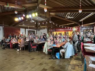 Der Einladung des Bürgermeisters waren weit über 140 Seniorinnen und Senioren am Sonntagnachmittag ins Hotel Jägerhof gefolgt, wo sie eingebettet in ein tolles Rahmenprogramm auch vor allem bei Kaffee und Kuchen und natürlich anderen Getränken viel Gelegenheit zum Plausch untereinander hatten. Nach der Begrüßung durch den Vorsitzenden der Kolping-Kapelle, Andre Vickus, und einem Grußwort von Kamp-Bornhofens Ortsbürgermeister Frank Kalkofen startete dann das tolle und umfangreiche Unterhaltungsprogramm, das von Vereinen und Institutionen vorbereitet worden war. Mitwirkende mit sehr unterhaltsamen Darbietungen waren neben dem Frauen- und Kirchenchor Nochern mit ihrer Vorsitzenden Ingrid Geib, der unter anderem das Loreley-Lied zum Mitsingen anstimmte, auch die Katholische Kindertagesstätte St. Nikolaus mit ihrer Leiterin Patricia Schladt, alle vier Jahrgangsstufen der Grundschule Kamp-Bornhofen mit ihrer Leiterin Simona Tauber und Uwe Vogt mit einem Vortrag aus dem Alltag, bei dem sich viele Gäste auch in bestimmten Lebenslagen selbst wiederfanden und diesen entsprechend mit Gelächter und Applaus erwiderten. Uwe Vogt wusste es auch, mit seiner Moderation entsprechend unterhaltsame Akzente zu setzen.