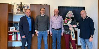 Im Rahmen einer kleinen Feierstunde dankten Bürgermeister Mike Weiland, Büroleiter Jan-Hendrik Clasen, Fachbereichsleiter Josef Bröder und Ferdinand Horlacher, stellvertretend für den Personalrat und damit alle Kolleginnen und Kollegen, Carmen Schwan für ihr dienstliches Wirken und wünschten ihr alles Gute für die Zukunft.