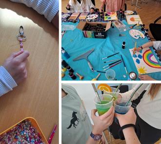 Bei dem letzten Mädchentreff im August gestalteten die Teilnehmerinnen Leinwände, Ketten, Armbänder und Schlüsselanhänger.