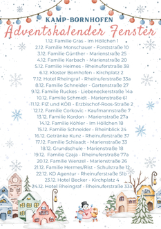 Auch in diesem Jahr starten am 1. Dezember wieder die Adventskalenderfenster, die bis Heiligabend in der Gemeinde verteilt angesehen werden können. Ein herzliches Dankeschön geht an dieser Stelle an Mitbürgerin Sabrina Gras, die diese tolle Aktion jedes Jahr in der Gemeinde vorbereitet.