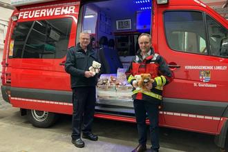 Der Wehrleiter der Freiwilligen Feuerwehr der Verbandsgemeinde Loreley Jörg Preißmann und Bürgermeister Mike Weiland haben eine Idee, die andernorts bereits erfolgreich praktiziert wird, aufgegriffen und umgesetzt: Künftig werden die beiden Einsatzleitwagen der Stützpunktwehren Braubach und St. Goarshausen flauschige Verstärkung erhalten, denn bei Bedarf werden Plüschteddys die Feuerwehraktiven bei Einsätzen, an denen bedauerlicherweise ab und an auch Kinder beteiligt sind, unterstützen. „Es ist wissenschaftlich belegt, dass das Erleben oder auch das bloße Sehen eines Unfalls Kinder extremen psychischen Belastungen aussetzt, was man zwar nicht sofort erkennt, was aber leider allzu oft zu Störungen in späterer Zeit führen kann. Dem möchten wir als Feuerwehr nun versuchen, in solch schlimmen Situation entgegenzuwirken und die Erlebnisse zumindest abzumildern, indem man sich den Kindern widmen und sie mit einem Teddy ablenken kann“, so Bürgermeister Mike Weiland und Wehrleiter Jörg Preißmann.
