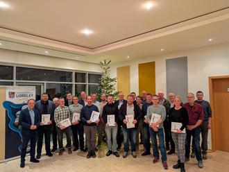 Rund 1.000.000 Euro gibt die VG Loreley an die ihr angehörigen 22 Gemeinden und Städte für eigene Projekte aus dem RZN-Programm weiter. Dementsprechend positiv war jetzt die Stimmung bei der Übergabe der Bescheide an die örtlichen Bürgermeister. Foto: Jan-Hendrik Clasen