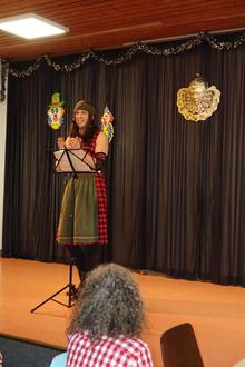 Alice McKim, Patersberger Neubürgerin, aus Kananda angereist, ließ die Anwesenden in den Narrenspiegel blicken und erklärte einige typisch deutsche Eigenschaften, die ihr als Kanadierin doch sehr fremd sind. Unter anderem die Wegbeschreibung „halb links“ hatte sie sehr verwirrt und zu einer abenteuerlichen Wanderung geführt.