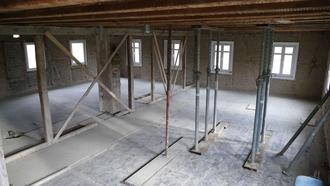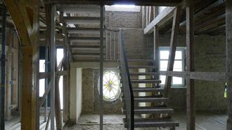 Zwar gestaltet sich die Koordinierung der verschiedenen Gewerke auf engstem Raum nicht einfach, doch nach dem Rückbau der Zwischenwände und der vollständigen Entkernung zeigt sich das Gebäudeinnere derzeit offen und schafft Arbeitsraum für die Handwerker, um somit die nächsten Schritte zum Umbau anzugehen und mit dem historischen Gebäude weiterhin respektvoll umzugehen.