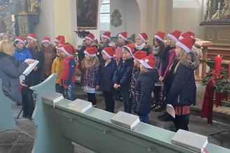 Nun erfreuten die etwa 20 Kinder die Gottesdienstbesucher mit einigen besinnlichen und heiteren Liedern. Hierfür gab es viel Lob und reichlich Applaus.