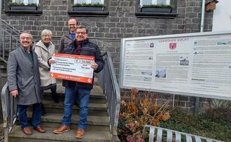 Der Förderkreis Heimatgeschichte e.V. übergab der Ortsgemeinde Kruft nun einen weiteren Scheck über 10.000€, den Ortsbürgermeister Walter Kill erfreut entgegennahm.