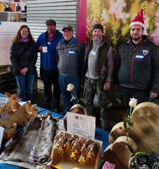 Mitarbeitende der St. Josefs-Werkstätten beim Adventsmarkt in Ochtendung: Die Barmherzigen Brüder Saffig haben in diesem Jahr bei diversen Weihnachtsmärkten handgefertigte Produkte verkauft.