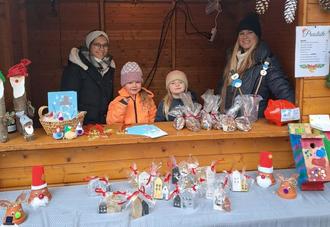 Tatkräftig gestalteten die Kinder in der Adventszeit Kunstwerke, die sie mit Stolz eigenständig verkauften.