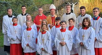 An seinem Namenstag kam der Trierer Bischof Dr. Stephan Ackermann in seine Heimat und feierte in der Pfarrkirche Sankt Arnulf in Nickenich mit vielen Gläubigen die Heilige Messe. Musikalisch wurde der Gottesdienst mitgestaltet vom Kirchenchor unter der Leitung von Ernst Ellerich und an der Orgel Gerhard Schlich. Nach der Messfeier segnete der Bischof die Kinder einzeln. Zahlreiche Menschen nutzten die Gelegenheit, um mit dem Bischof ein paar Worte zu wechseln. Und dieser freute sich, bekannte Gesichter wiederzusehen. Mit einigen Ministranten der Pfarreiengemeinschaft Kruft-Nickenich und Pfarrer Norbert Missong stellte sich Bischof Stephan auch zum Gruppenbild.