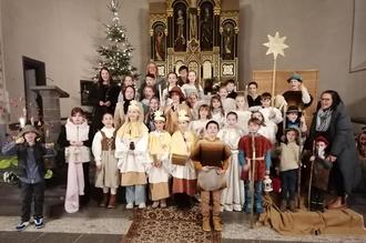 Heilig Abend fand in der Pfarrkirche Sankt Arnulf Nickenich ein Gottesdienst mit Kinderkrippenspiel statt. Der Gottesdienst wurde von dem Pfarrgemeinderatsmitglied Joachim Praml geleitet und das Krippenspiel von Nicki Meister, Pamela Hilger und Stephanie Schmitt. Der Andrang zu diesem Gottesdienst war groß. Die Kinder hatten viel Freude, sowohl die Kinder, die beim Krippenspiel mitwirkten, als auch die, die es sahen. Und die Erwachsenen auch! In der Pfarreiengemeinschaft Kruft-Nickenich fanden in allen drei Kirchen Gottesdienste mit Krippenspiel zur gleichen Zeit in der statt, wofür Pfarrer Norbert Missong sehr dankbar ist. Zeigt das doch, wie viele Engagierte es auch an den Feiertagen in den einzelnen Orten gibt.