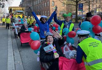 Danach begab man sich gemeinsam zur Zugposition vor dem Wagen des Senders „Radio Rhein-Sieg“, welcher die Gruppe mit lauter Musik in Stimmung brachte. Nach langem Warten ging es dann gegen 13:00 Uhr bei strahlendem Sonnenschein endlich los. Es war ein tolles Gefühl, mit der Rikscha-Kolonne an den jubelnden Menschenmassen vorbeizufahren.