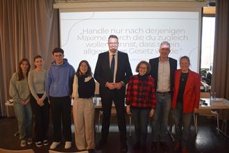 Zu Gast waren Staatsminister Alexander Schweitzer (SPD), ehemaliger Gesundheitsminister, jetziger Minister für Arbeit, Soziales, Transformation und Digitalisierung. Des Weiteren wurde die Runde durch Dr. med. Jens Mittler, leitender Oberarzt und Transplantationschirurg der Uniklinik Mainz, bereichert. Sowohl Lehrerin Frau Hetsch, selbst Betroffene, sowie Mariele Höhn, Lebertransplantierte, haben sich an der Podiumsdiskussion beteiligt. Die Schüler*innen der Stufe 12 wurden durch Anita Hodaj und Noelle Retzmann vertreten.