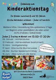 Nächster Kinderaktionstag für Kinder zwischen 6 und 10 Jahren findet am 13.03.2026 von 15:00 - 17:30 Uhr statt. Anmeldung bis zum 11.03.2026.