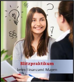 MAYEN. Du willst wissen, welche beruflichen Möglichkeiten das Finanzamt zu bieten hat und wie eine Ausbildung oder ein duales Studium ablaufen würde? Dann ist das Blitzpraktikum genau das richtige für dich!