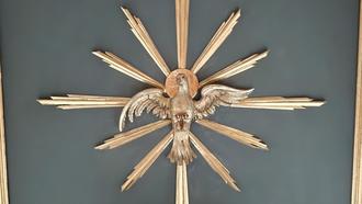 Zum Friedensgebet lädt der Pfarrgemeinderat in die Kirche Kruft ein, wo Friedenstauben und Heilig-Geist-Taube zu entdecken sind.