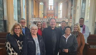 Foto: (von links) Sandra Rheindorf-Weber, Wolfgang Weber, Monika Bermel, Evi Weinand, Elisabeth Schmitz, Organist Stefan Pöll, Horst Schmitz, Monika Leinz, Kirsten Baier und Pfarrer Norbert Missong.