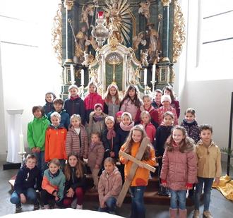 In der Barockkirche stellten sich die Kinder zum Gruppenbild auf