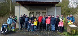 Es trafen sich ca. 30 Erwachsene und Kinder am Sonntagmorgen kurz nach 10 Uhr beim Tumulus und Nischengrabmal am Sportplatz.