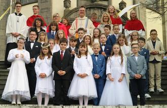 23 Mädchen und Jungen empfingen in der Pfarrkirche Sankt Dionysius Kruft am Weißen Sonntag, dem ersten Sonntag nach Ostern, die heilige Kommunion. Vorbereitet und begleitet wurden sie in den vergangenen Monaten von ihren Katechetinnen Evi Weinand, Sabine Lohner und Stephanie Schmitz und den Pfarrgemeinderatsmitgliedern Monika Bermel und Wolfgang Weber (Vorsitzender) sowie von ihrem Pastor Norbert Missong. Musikalisch wurde die Festmesse mitgestaltet vom Kirchenchor Cäcilia, dem Musikverein Kruft und der Solistin Louisa Baier.