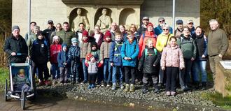Es trafen sich über 20 Erwachsene und 14 Kinder am Sonntagmorgen schon kurz vor 10:00 Uhr beim Tumulus und Nischengrabmal am Sportplatz.