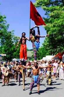 ab 14.00 Uhr - Buntes Markttreiben mit vielfältigem Angebot, Afrikanische Akrobatikshow mit ADESA, Kinder-Mitmach-Theater mit dem L’UNA Theater, Mitmach-Circus Don-Meloni, Familienprogramm und Stelzenläufer mit „Chapeau-Bas“, Bauchtanzgruppe, Musik, Falknerei Dippel