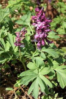 Hohler Lärchensporn, lat. Corydalis cava, Höhe: 15 - 30 cm, Blühfarbe: violett oder weiß, Blütezeit: März - Mai