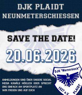 Plaidt - Am Samstag, den 20. Juni, ab 18:00 Uhr, heißt es wieder „Treffsicherheit beweisen“, wenn die Fußballabteilung der DJK Plaidt zum traditionellen Neunmeterschießen einlädt. Ob Vereine, Firmen, Freundeskreise oder Nachbarschaften - alle Plaidter sind herzlich eingeladen, sich der sportlichen Herausforderung zu stellen.