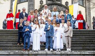 Gruppenbild der Kommunionkinder nach der Messfeier