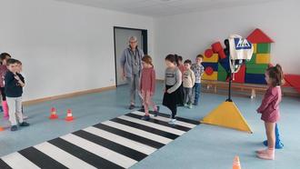 Der Rabe und Frau Haybach gaben uns Tipps zum sicheren Verhalten im Straßenverkehr. Spielerisch lernten die Kinder, welche Regeln man beachten sollte, welche Gefahren es gibt und wie man sicher eine Straße überquert.
