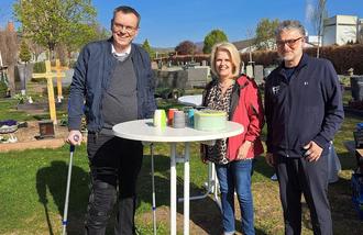 In Absprache mit den Verantwortlichen der Ortsgemeinde lud der Pfarrgemeinderat Sankt Dionysius Kruft am Palmsamstag zu einem Friedhofscafé auf den Friedhof in Kruft ein. Dabei ging es nicht um eine kommerzielle Verköstigung. Vielmehr war das Ziel, als Kirche noch mehr als bisher vor Ort da zu sein, wo die Menschen einander begegnen. Mit einem Gesprächsangebot, das dankbar angenommen wurde, standen bei Sprudel und Kaffee Pfarrgemeinderatsmitglieder bereit, um Trauernden ihre Ohren und ihre Zeit anzubieten.