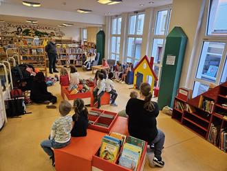 17 Kinder der Kita St. Willibrord in Plaidt haben sich zusammen mit ihren Erzieherinnen auf den Weg in die Stadtbücherei in Andernach aufgemacht. Zuvor hatten sie sich mit dem Kinderrecht „Recht auf Bildung“, speziell mit dem Thema Bücher beschäftigt.