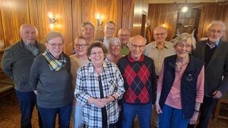 Einige Chormitglieder beim Pressefoto. In der karierten Bluse vorne ist die bisherige und neue Chorvorsitzende Monika Leinz.
