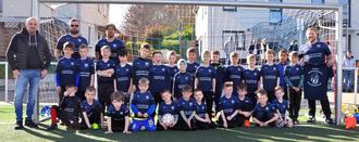 Die Übungsleiter Stefan Müller, Jörg Stenzel und Nick Fritsche bedanken sich im Namen der DJK Plaidt bei Herrn Engels für die tolle Überraschung, welche die Kinder nun einheitlich auftreten lässt.